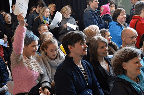 Sera nógv fólk komu inn á gólvið leygardagin, tá ið Fountainhúsið hevði opið hús, loppumarknað og listauppboðsølu.